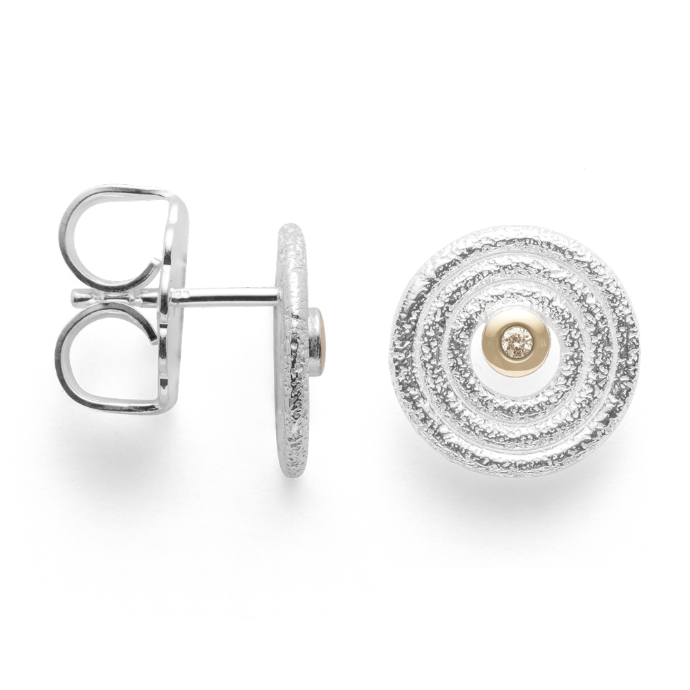 43010 925 sterling silver stud earrings, 14K matte/brushed finish, 0.02 ct