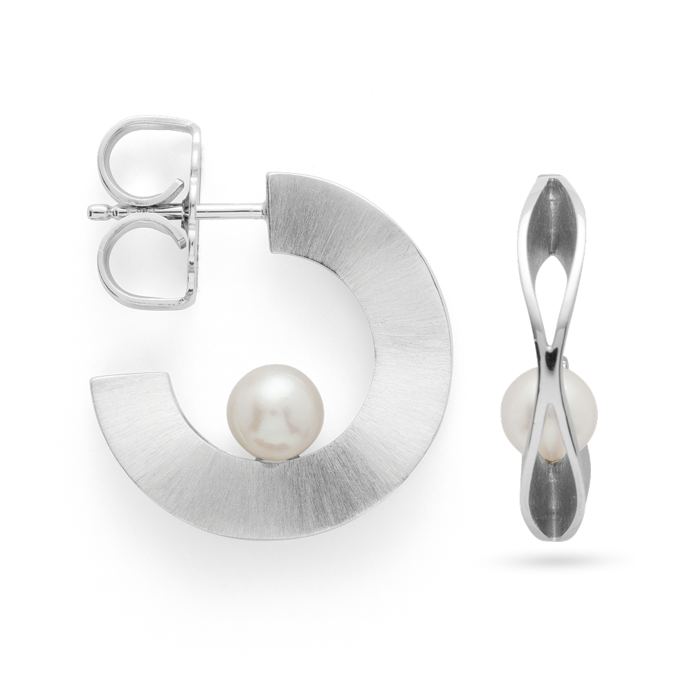 42961 925 sterling silver creole, rho. matt., cultured white pearls 2.12ct