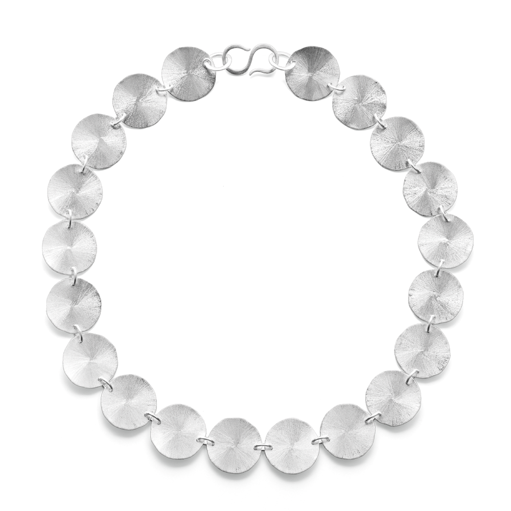 Sporty, elegant design necklace from the pen of the Osnabrück designer Dietmar Sebastian: 20 individual links made of matt-finished 925/sterling silver, elaborately handcrafted, form a magical, 48cm long design necklace with a strikingly characteristic surface design, which, depending on the incidence of light, makes for a memorable necklace reflections. The special hook closure also ensures the craftsmanship and goldsmith appearance of the necklace. The most memorable thing about the jewelry from Osnabrück-based designer Dietmar Sebastian is always the surface design. When he started making his jewelry with rough surface structures in the 90s, it was a small sensation. Among the designers, Dietmar Sebastian is one of the minimalists, because omission is crucial for him. For him there are no decorative applications in jewelry, only the pure form counts. “I don’t invent shapes, I interpret them,” says the talented designer. All bastian inverun pieces of jewelry are delivered including appropriate jewelry packaging. Dimensions: Length: approx. 48 cm including hook closure Diameter of the individual links: 2.3 cm Number of individual links: 20 pieces