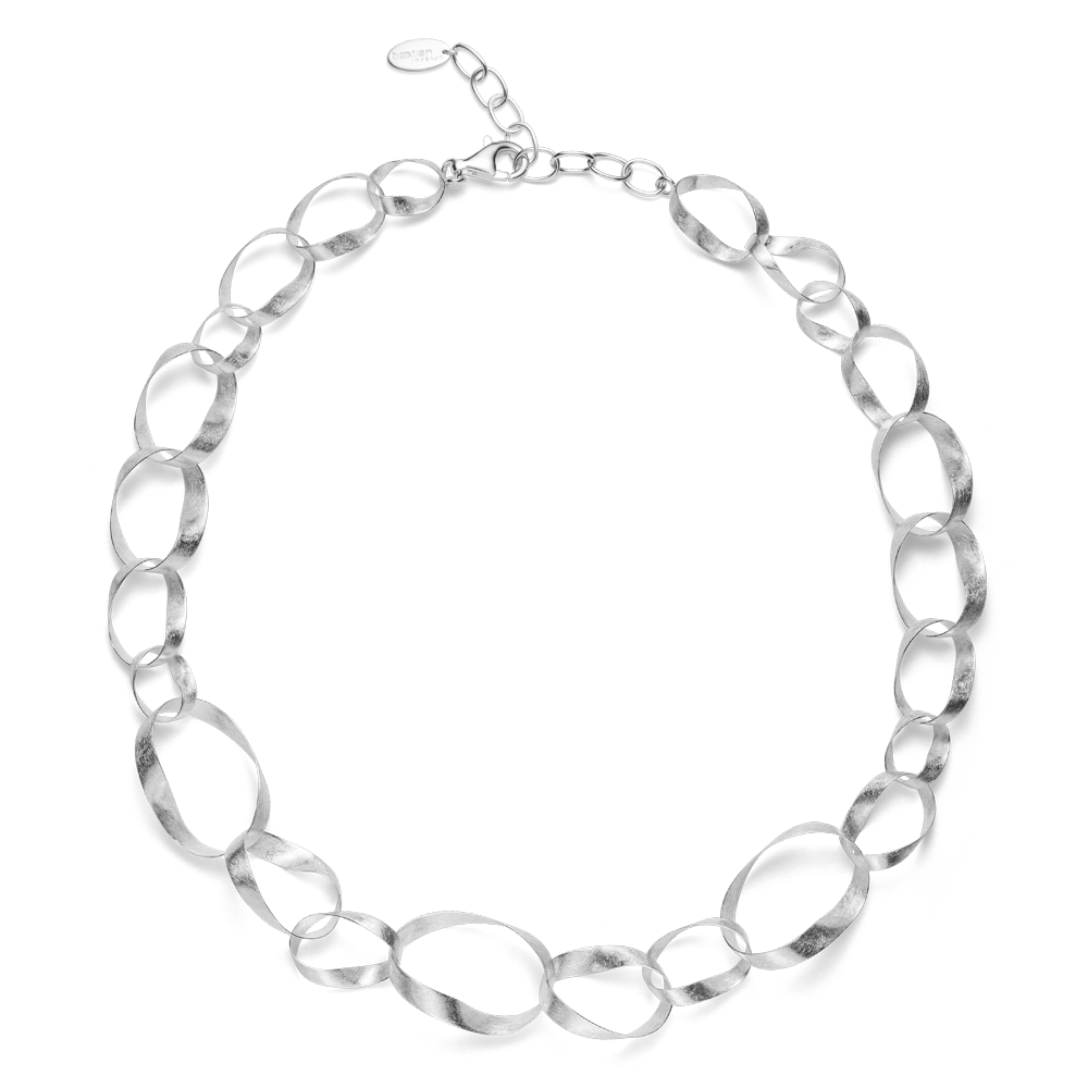Twisted, intertwined, dynamically designed – a special kind of design necklace. Opulent and made for the individual, self-confident woman of today. This necklace with a length of 51 cm and a 3 cm extension option is lovingly handcrafted by the bastian inverun silversmiths. Design by Nadine Resch. Available with matching ear studs or earrings. A sensual, curved shape and a consistently characteristic design signature characterize the jewelry creations of the freelance designer Nadine Resch, who lives in Düsseldorf. Their multifaceted designs always provide fresh inspiration and rebel against the uniformity of today. Everyone bastian inverun pieces of jewelry are delivered including matching jewelry packaging. Dimensions: Total length: 51 cm Extension chain: 3 cm Length of the largest link: 3.2 cmWidth of the largest link: 2.3 cmLength of the smallest link: 1.5 cmWidth of the smallest link: 1.2 cm