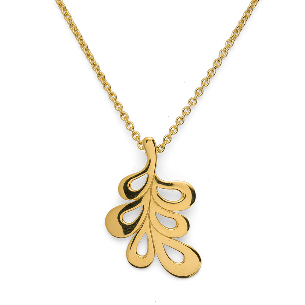 Design piece of jewelry to fall in love with: This pendant made of gold-plated, polished 925/- sterling silver impresses with its organically shaped leaf look. Whether something sporty for everyday life or for a special occasion – this piece of jewelry can be used in a variety of ways. Catherine Niegel is a goldsmith and qualified designer. She has been working as a freelance designer at home and abroad since 2002. Her to-the-point, emotional design makes each of her works an absolute favorite piece of jewelry. “Good design is like icing on the cake.” (Catherine Niegel) All bastian inverun pieces of jewelry are delivered including appropriate jewelry packaging. All pendants are delivered without a corresponding accessory chain unless otherwise noted. Dimensions: Length of the pendant: 2.50cm Width (measured at the widest point): 1.70cm