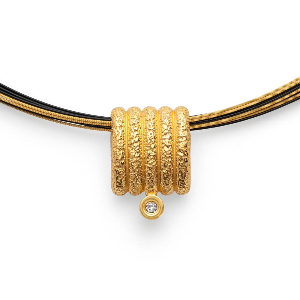 This double-layered pendant made of gold-plated 925 sterling silver impresses with a hand-finished matt, brushed surface structure and a sparkling white topaz with 0.02 ct. A special piece of jewelry that can be combined in many ways and is very well received thanks to its high-quality workmanship and consistently handcrafted character. Perfect in combination with the matching ear studs and matching ring. The master goldsmith Thomas Mayer, who lives in Rottenburg am Neckar, used his years as a journeyman to gain know-how and experience in various workshops. He loves experimenting with different materials, surfaces and natural impressions in his workshop. With this experience he is able to design sophisticated pieces of jewelry with his own signature. “For me, nature is the measure of all things.” (Thomas Mayer) All pendants are delivered without the corresponding accessory chain, unless otherwise noted. All bastian inverun pieces of jewelry are delivered including appropriate jewelry packaging. Dimensions: Length of the pendant: 1.5 cmWidth of the pendant: 1.1 cmDiameter of the white Topazes: 0.2 cm