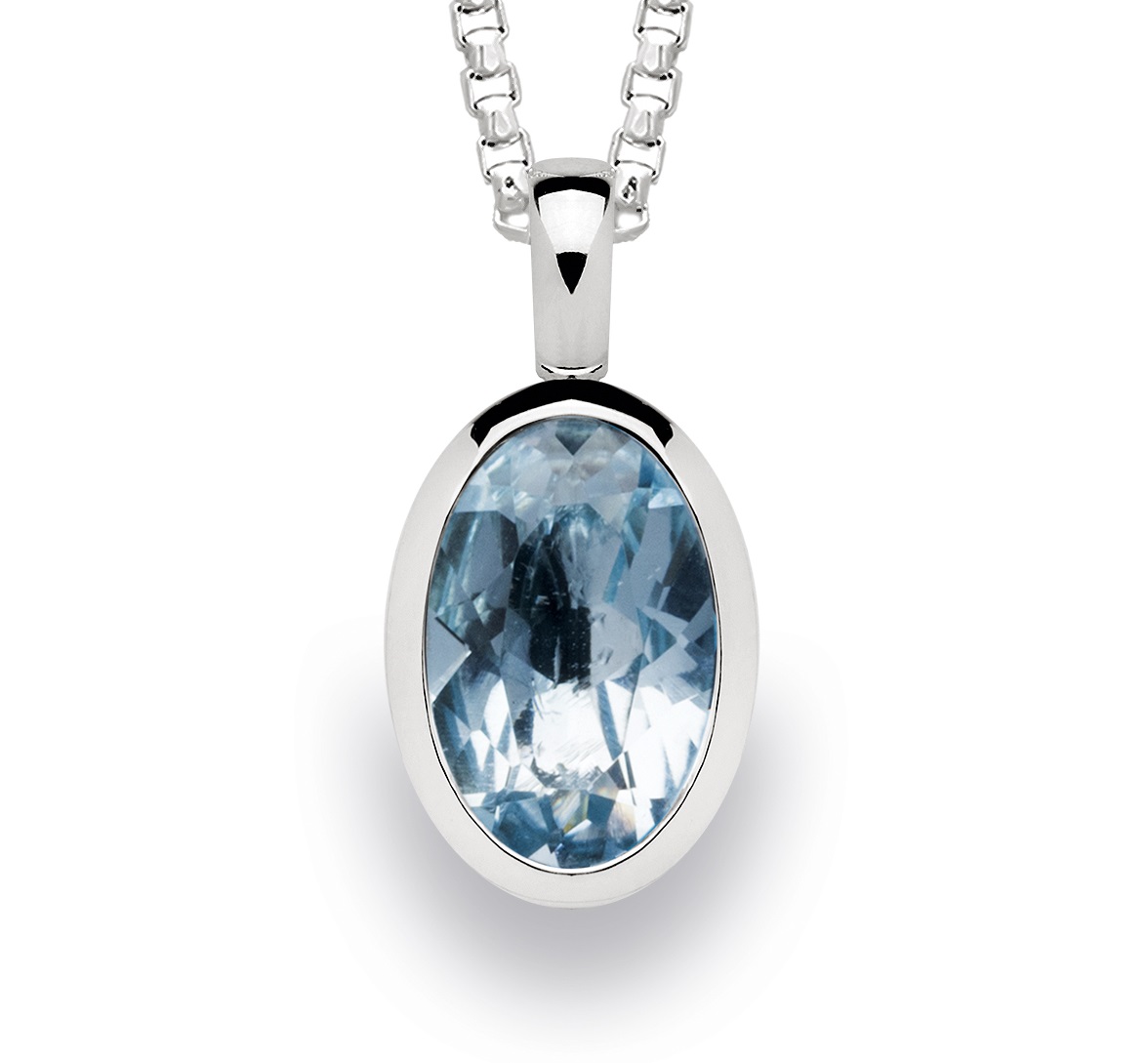 22491 925 sterling silver pendant, rho. Polished, blue topaz 3.3ct.