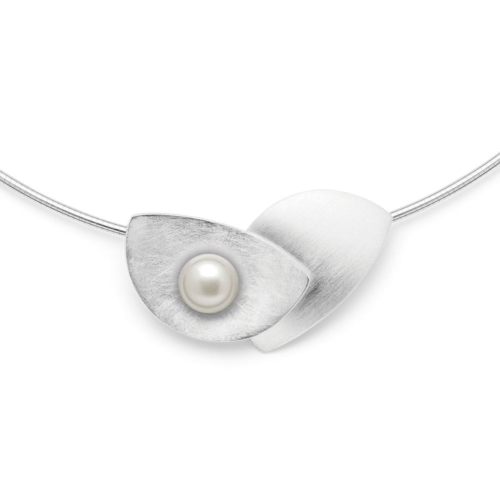 A shimmering cultured pearl arranged on the side meets matt 925 sterling silver and a design language inspired by nature. A classic and timeless combination of high-quality natural materials, which is particularly highlighted by the solid workmanship of the rhodium-plated (tarnish-proof) pendant with hidden suspension. As a set with a matching ring and stud earrings, this pendant (design by Nadine Resch), which is perfect as wedding jewelry, is particularly impressive. We recommend a rhodium-plated Tonda Omega bracelet for this pearl pendant (item 26991). All pendants are delivered without the corresponding accessory chain unless otherwise noted. All bastian inverun pieces of jewelry are delivered including matching jewelry packaging. Dimensions: Width of the pendant: approx. 3.7cm Diameter of the pearl: approx. 0.8cm