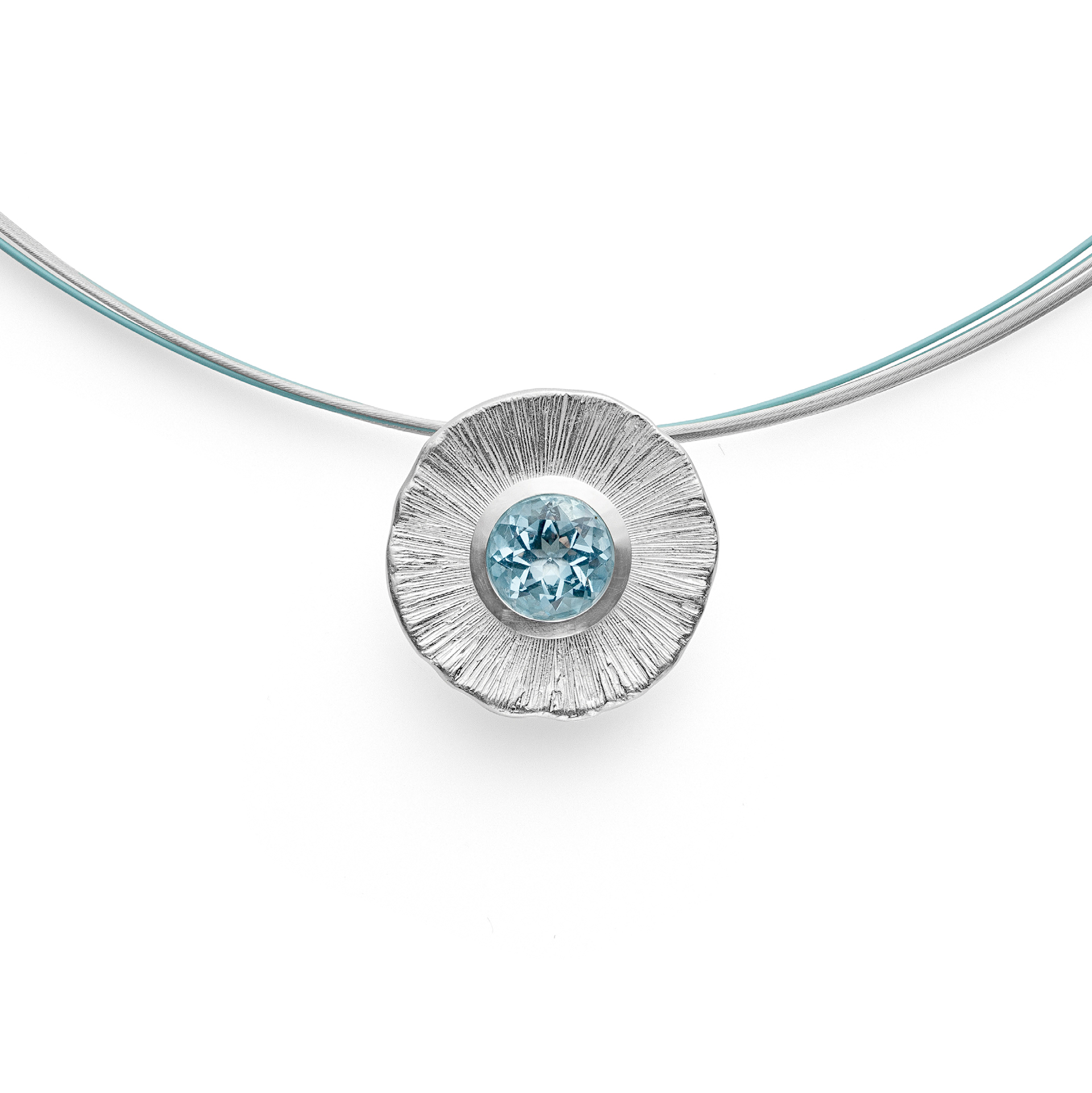 44991 925 sterling silver pendant, rho. matt./specialtex, blue topaz