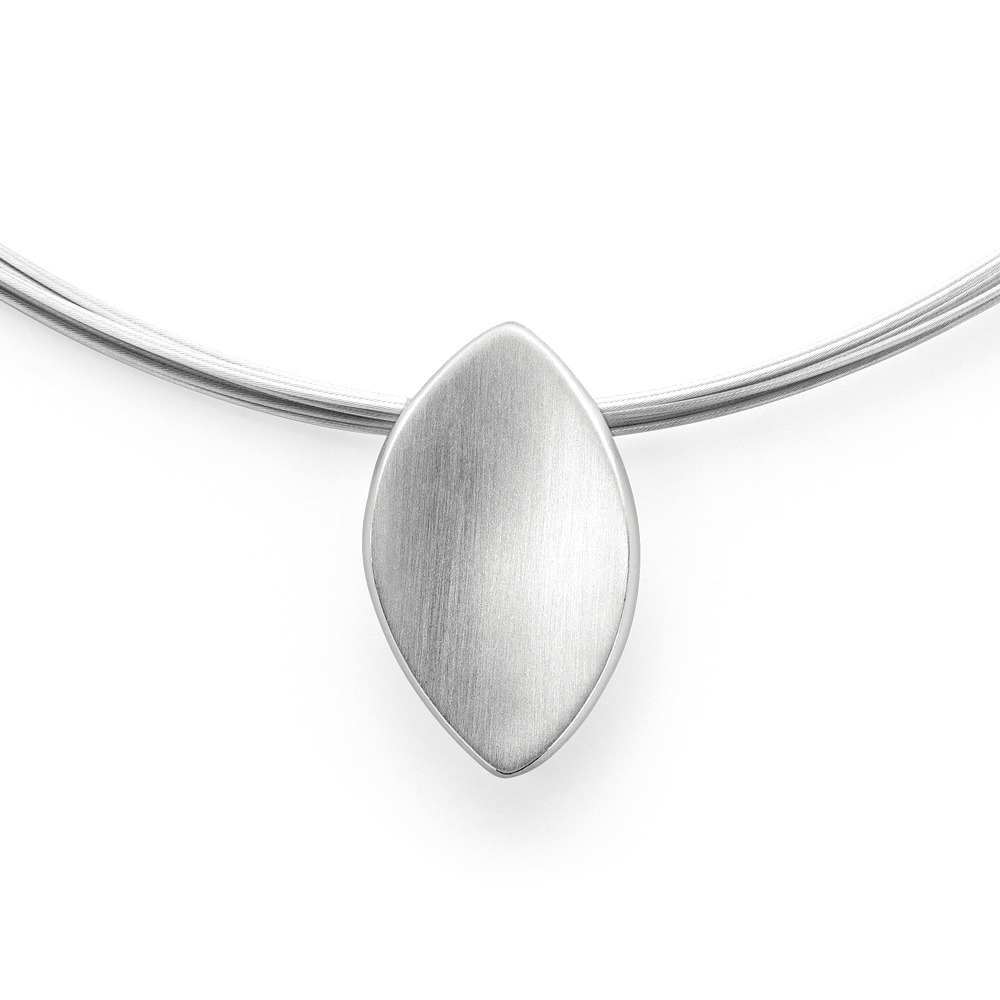 Magically feminine necklace made of matt 925/- sterling silver with a floral-inspired design. This piece of jewelry was designed with great attention to detail by the designer Sabine Brandenburg-Frank. Available with matching earrings and a matching ring. The freelance graduate designer Dr. from Pforzheim. Sabine Brandenburg-Frank creates pieces of jewelry that are contemporary and equally timeless. The charismatic design and the exceptionally contrasting feel of her jewelry reflect the pure joy of life. They combine distinctiveness, aesthetics and innovation and appear excitingly calm. All pendants are delivered without a corresponding accessory chain unless otherwise noted. All bastian inverun jewelry pieces are delivered including matching jewelry packaging. Dimensions:Width of the pendant (widest Position): 1.5 cmLength: 2.4 cm