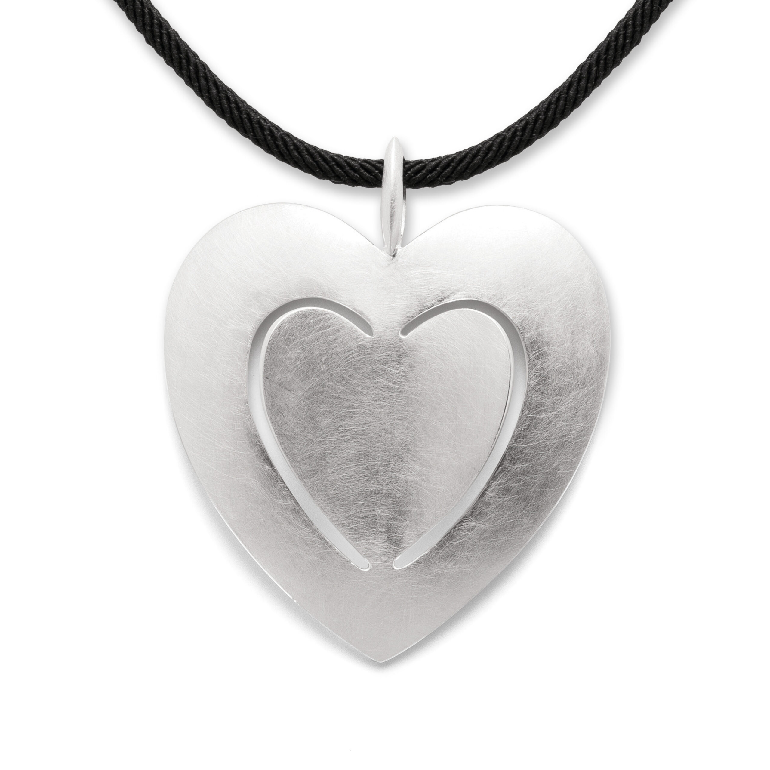 Impressive heart pendant in “fan look”: This scratch-matte pendant made of radiant 925 sterling silver is the perfect jewelry companion for almost every occasion. Whether sporty combined or for a big entrance – this jewelry reaction simply enhances every outfit. In particular, the cut-out heart, which emphasizes the heart shape and is slightly fanned outwards, ensures the special charisma of this irresistible necklace. A sensual, curved shape and a consistently characteristic design signature characterize the jewelry creations of the freelance designer Nadine Resch, who lives in Düsseldorf. Their multi-faceted designs always provide fresh inspiration and rebel against the uniformity of today. All pendants are delivered without the corresponding accessory chain unless otherwise noted. All bastian inverun pieces of jewelry are delivered including matching jewelry packaging. Dimensions: Width: 4.3 cm Height including eyelet: 5 cm Height of eyelet: 1.2 cm