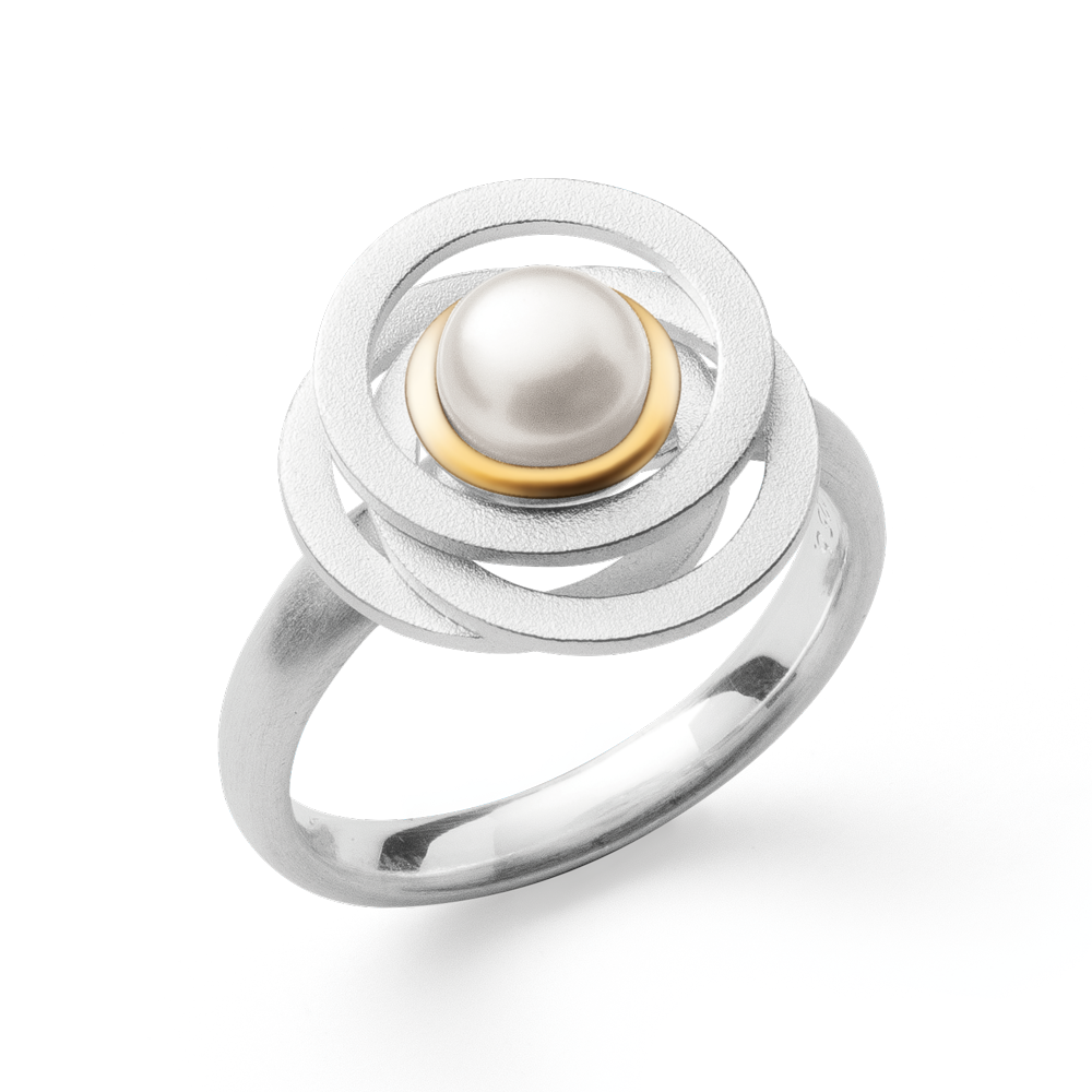 4396156 925 sterling silver ring, part gilded, rho. Sand matte/polished, pearl