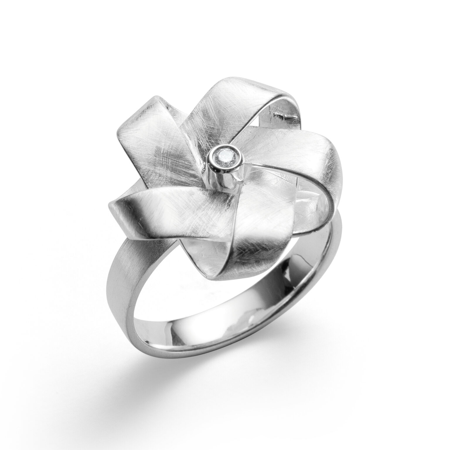 This special ring made of scratch-matt and line-matt 925/- sterling silver impresses with a consistently characteristic design language and a centered brilliant cut diamond with 0.03 ct (W-SI). Perfect in combination with the matching ear studs and matching pendant. Catherine Niegel is a goldsmith and qualified designer. She has been working as a freelance designer at home and abroad since 2002. Her to-the-point, emotional design makes each of her works an absolute favorite piece of jewelry. “Good design is like icing on the cake.” (Catherine Niegel) All bastian inverun pieces of jewelry are delivered including appropriate jewelry packaging. Dimensions: Diameter: 1.8 cm
