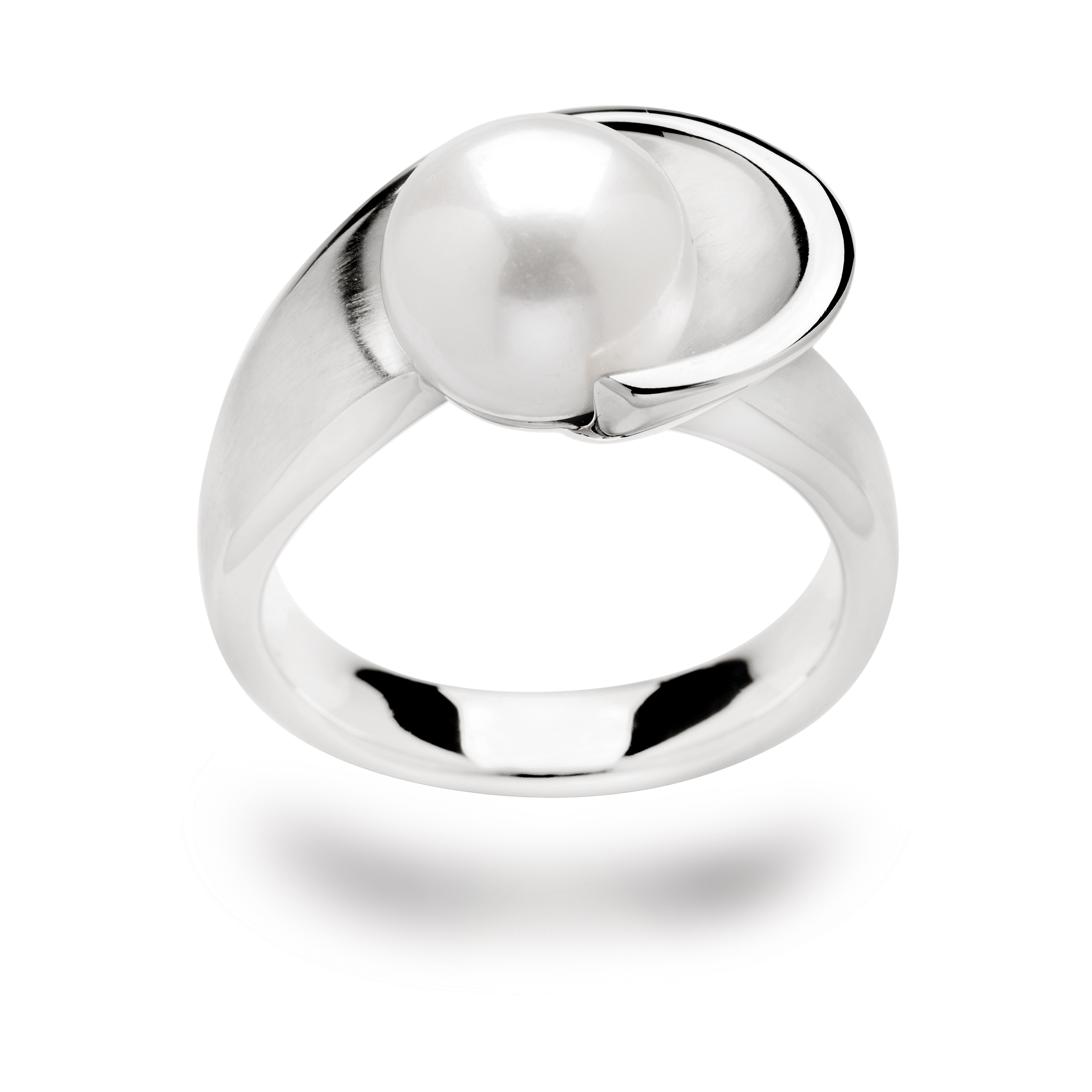 2065158 925 sterling silver ring, rho. matte/polished, cultured white pearl, 4.51 ct