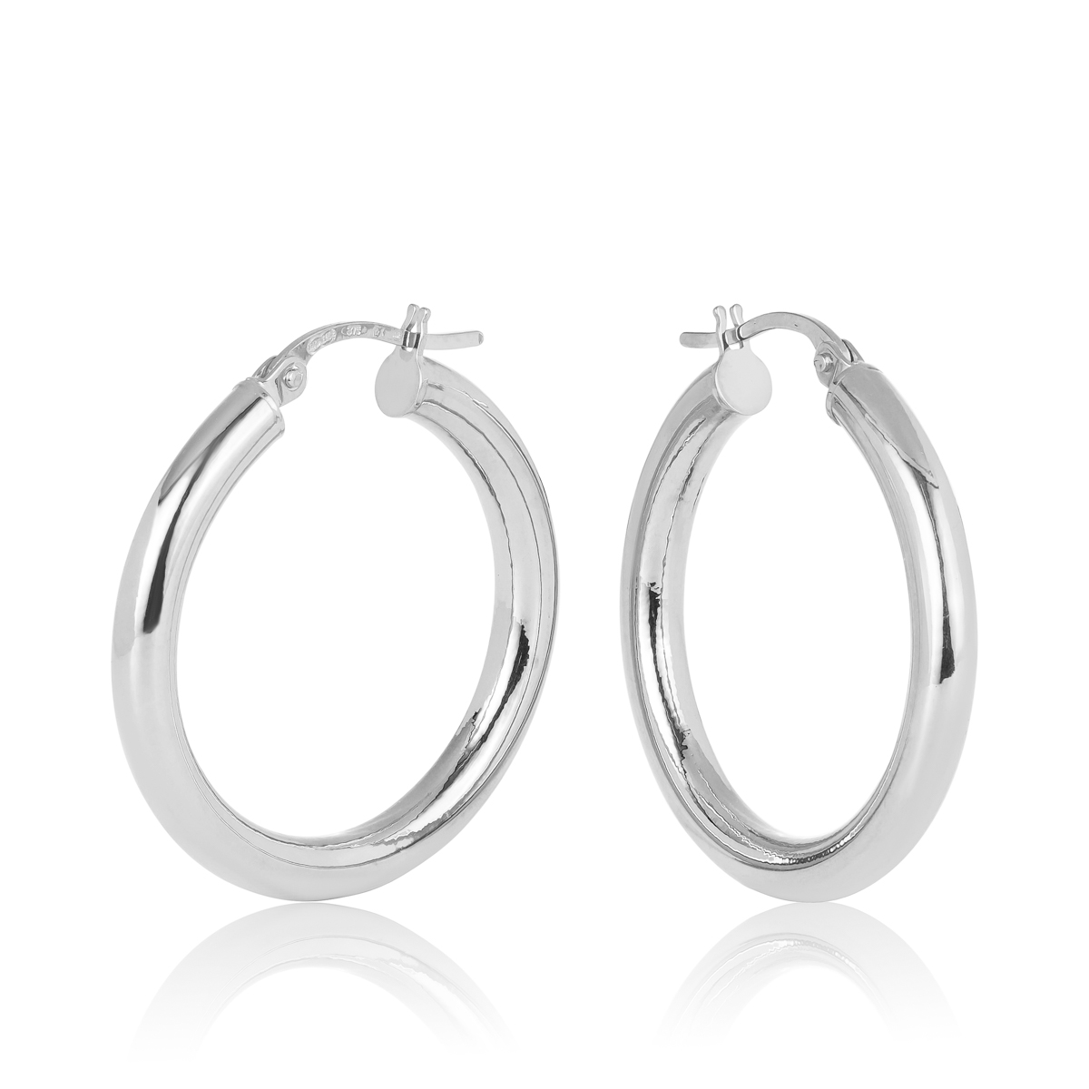 20OBC51-990 9W Aosta Plain 3mm Round Tube Hoop Earring 20mm Diameter