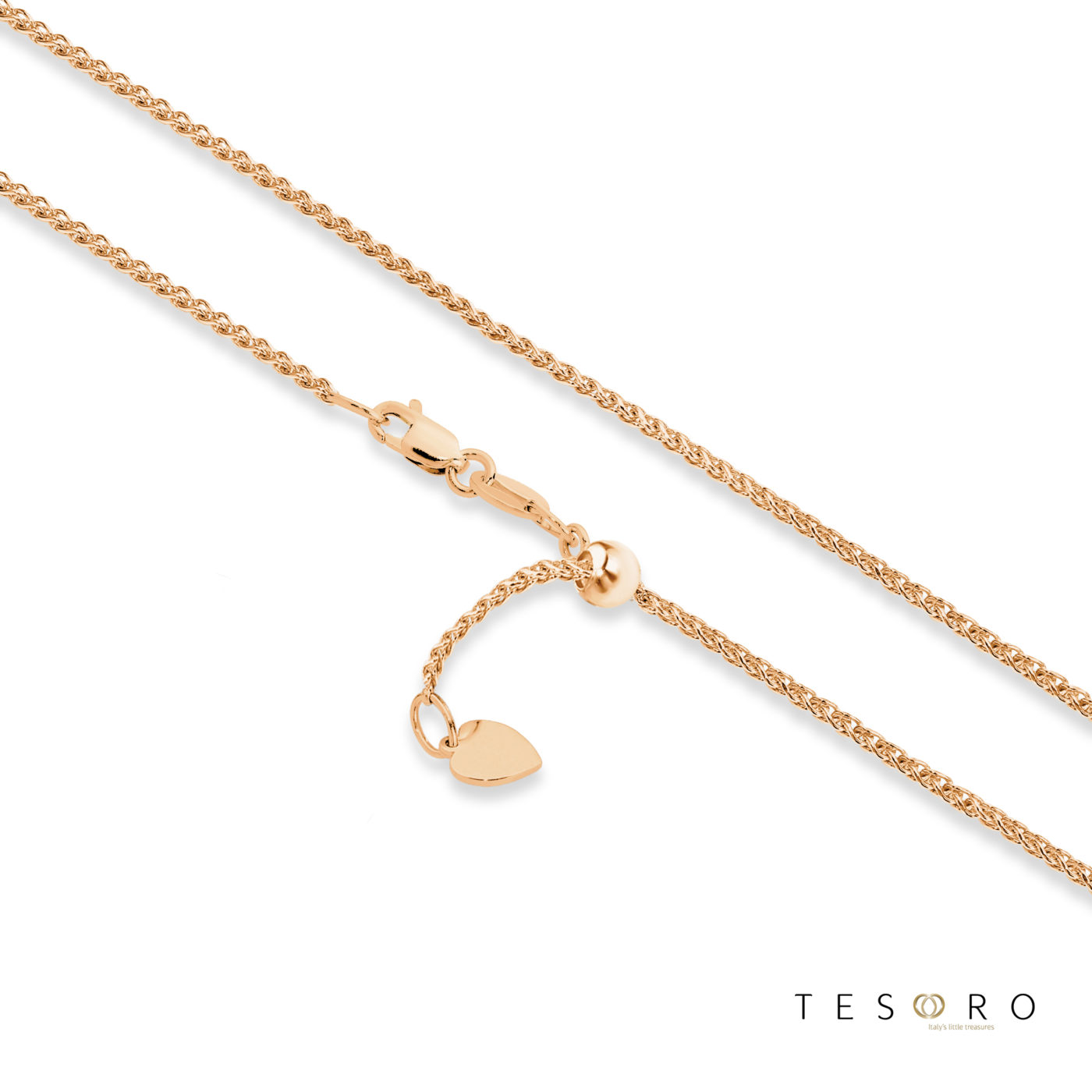 ADJ431.9CH 9R Trezzo 1.2mm Round Diamond Cut Magic Wheat Link Adjustable Chain, 50cm